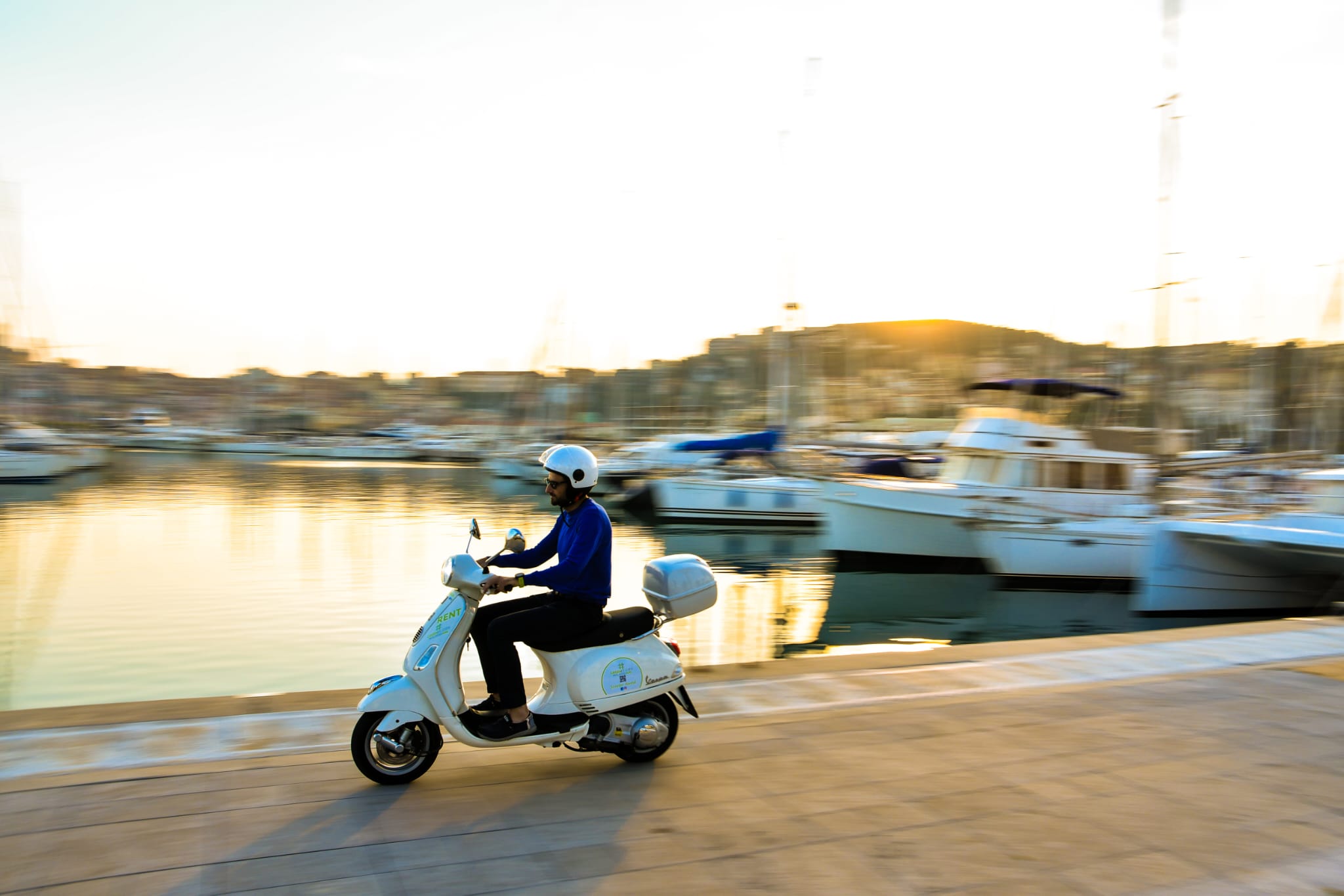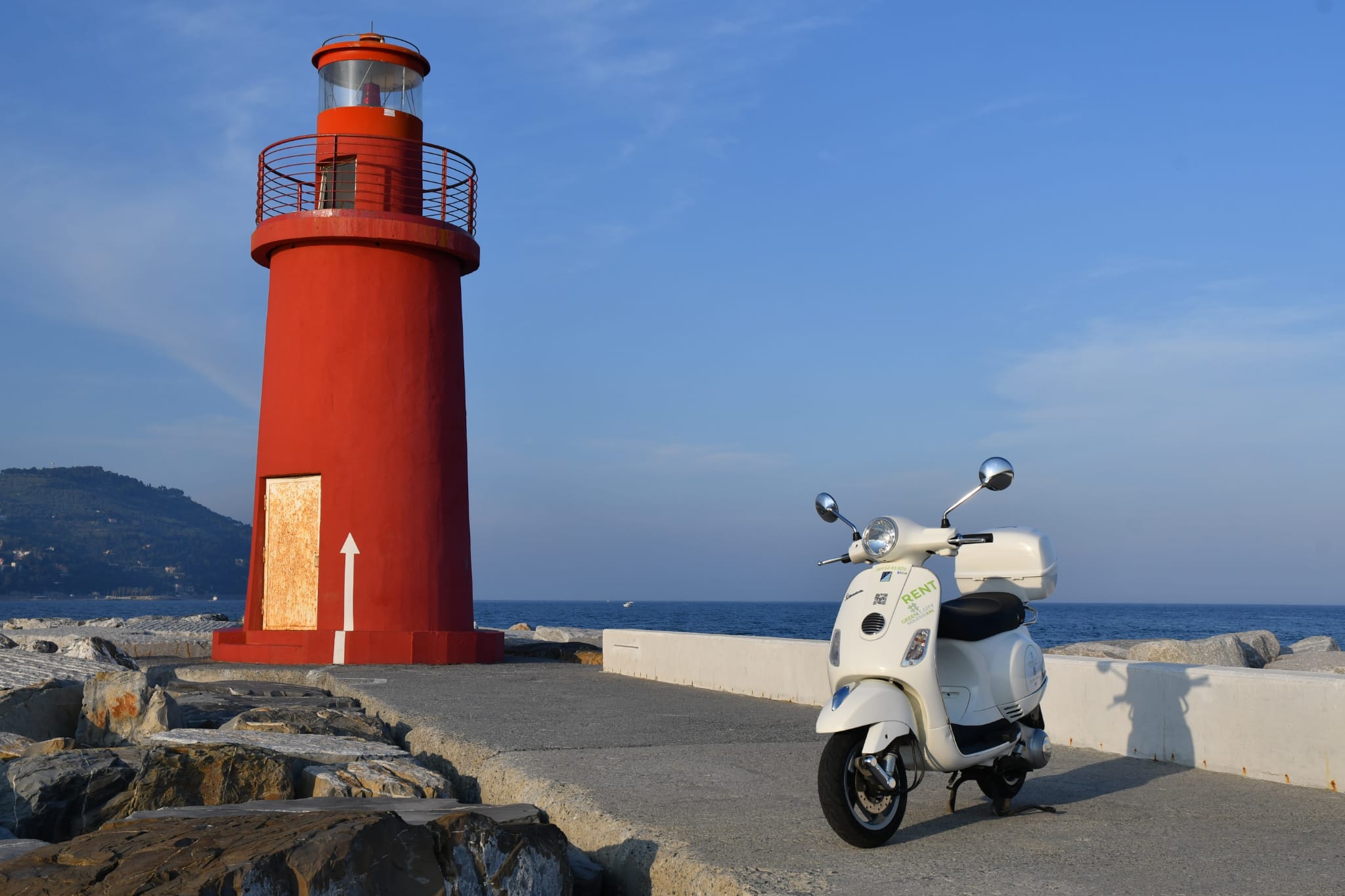 La Vespa, simbolo nel mondo del gusto e dell’eleganza “all' italiana”, si identifica in uno stile di vita che ha i suoi capisaldi in valori quali la libertà , la bellezza , il rispetto per il mondo che ci circonda. ”Il vespino” snello e agile è lo scooter ideale per chi vuole mettere i piedi a terra con sicurezza e cerca uno mezzo “svelto” nel traffico , senza rinunciare a tutte le sue qualità: agile, solida e con finiture curate. Il motore, brillante, spinge con vigore fin dalla partenza garantendo nel contempo una elevata efficienza nei consumi. Guida anche tu in riviera , l’emblema del lifestyle italiano.